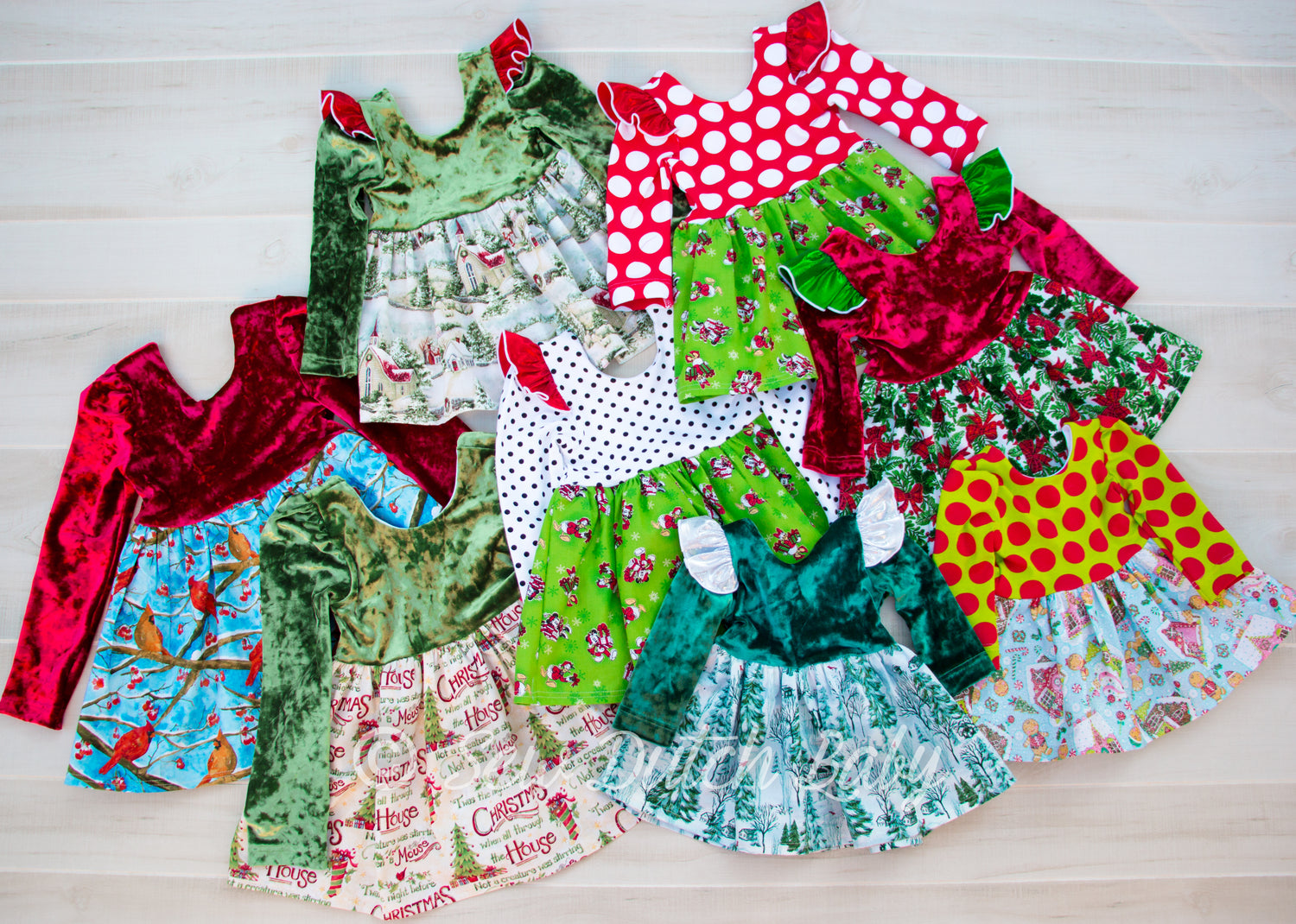 Choose sleeve length and add-on options such as flutters, bottom ruffles, sequins, and velvet!